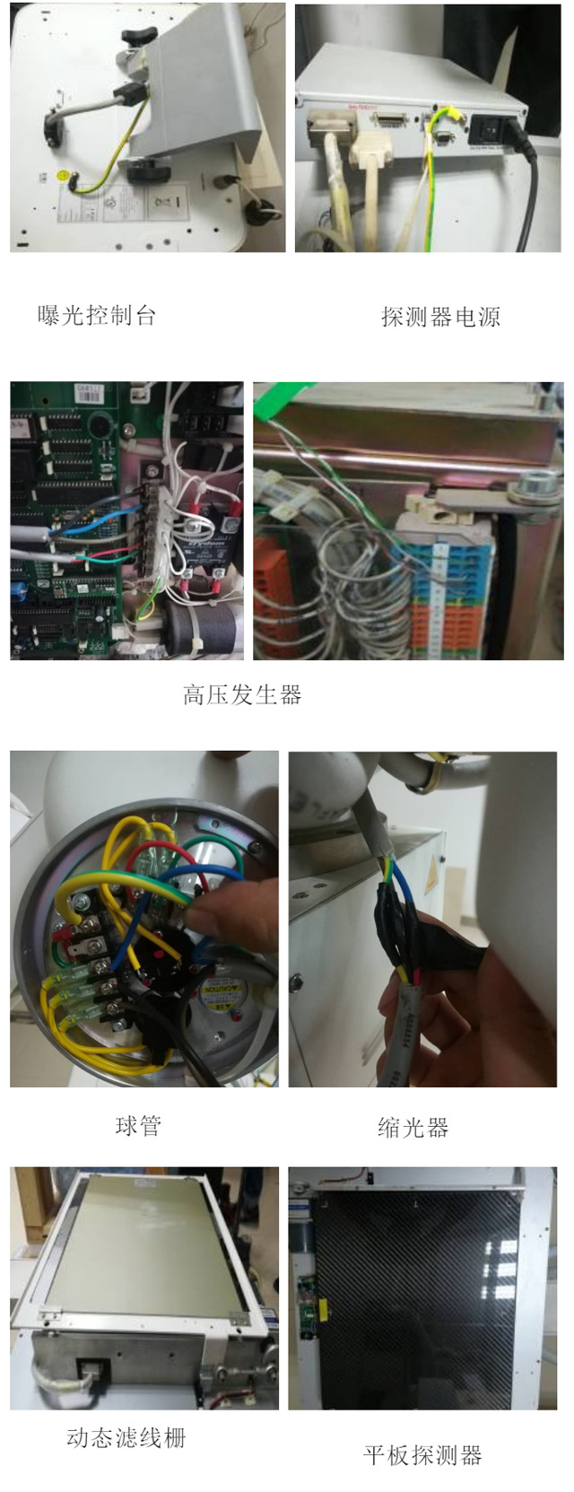 4.拆除悬吊的控制面板和接线,第一步取下缩光器,第二步取下球管,第三步取下控制面板,第四步平板探测器。