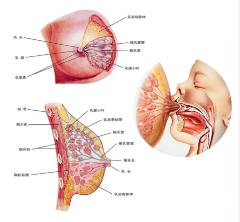 乳腺的正常结构,乳房的大体形态结构,形状是半球状,乳腺上下范围在2-6前肋,左右范围在,内侧胸骨旁线-外侧在腋中线,深面:胸大肌和部分前锯肌,中央部分是乳头、乳晕。正常的乳腺组织是15-20腺叶组成,就像一串大葡萄,每个腺叶又分很多小叶。每一腺叶发出一输乳管,输乳管末端开口于乳头??梢韵胂蟪梢豢檬?,树枝就像腺叶。那么乳腺从前向后看,乳腺腺叶与输乳管都以乳头为中心放射状态的排列,那么这个脂肪组织与结缔组织充填于乳腺腺叶和输乳管之间?!と橄俳峁褂汕橙肷钜来挝?,皮肤、皮下组织、腺体层、腺体后组织。乳腺的结构是皮肤,皮下脂肪,腺体层。