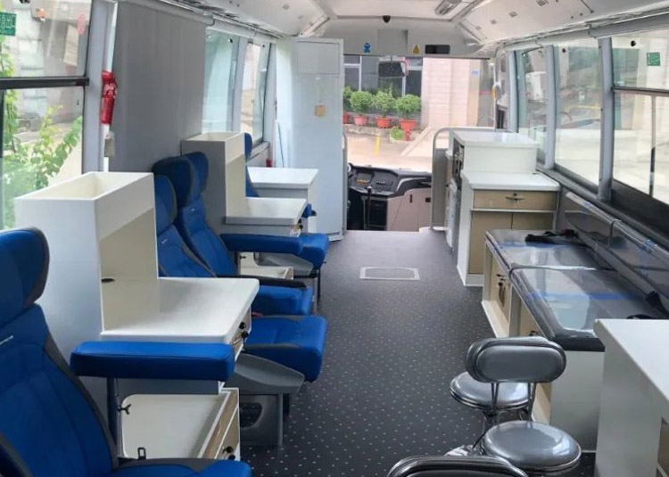 采血车属于特种车辆,车里面的医疗设备,采血仪器、都是需要按照设计要求装备的。献血流程跟在献血屋里面差不多的。有完整的消毒检查采血的管理制度。完善的医疗卫生设备,污染区要分开。采血车的计量仪、储血冰箱都是医疗专用设备。献血者有舒适的献血空间,柜子质量过硬,干净整洁提供了好的操作空间。医疗和休息采血车区域巧妙地分隔开来,既缓解了医护人员的疲劳,又缓解了受检者的紧张情绪。 整车供电线路按照分路设计:针对不同设备需求,单独设计布置,确保采血设备、储血设备不受干扰,空调与生活、照明辅助都经过精心计算分路设计,使整车用电更加安全。